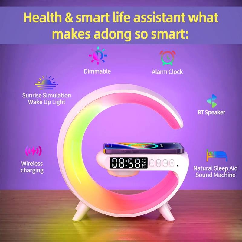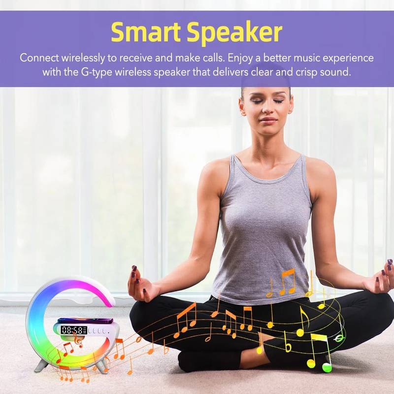 LED Lampe Smart G Bluetooth Lautsprecher Drahtloser Ladegerät RGB Wecker Atmosphäre Nachttischlampe