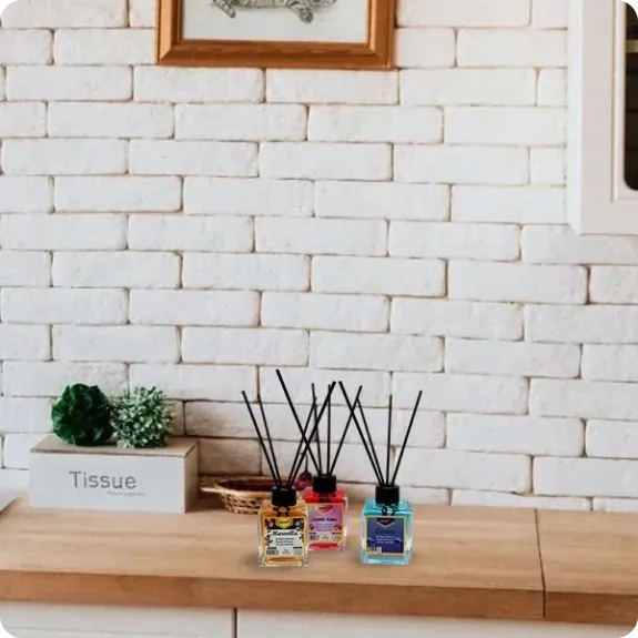 - Für eine optimale Duftverteilung die Fiberstäbchen in die Duftflasche einsetzen. Je nach gewünschter Duftintensität können die Stäbchen regelmäßig gedreht werden.