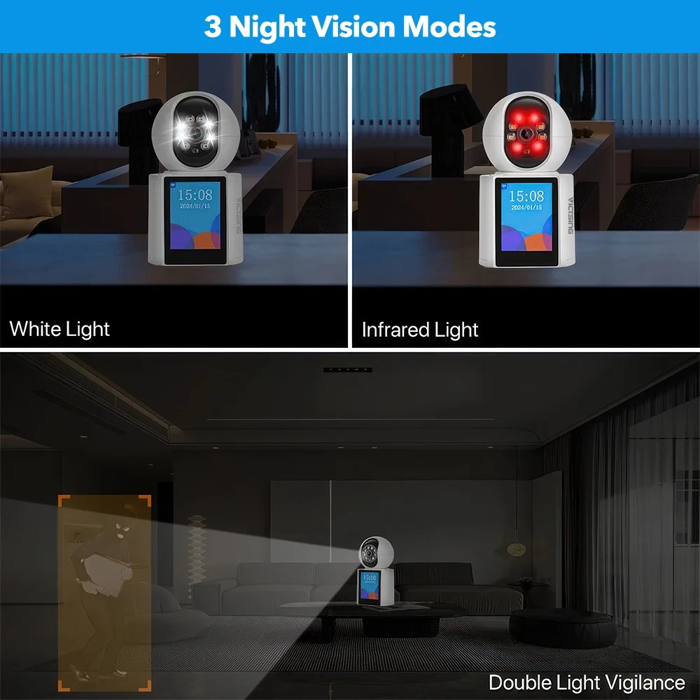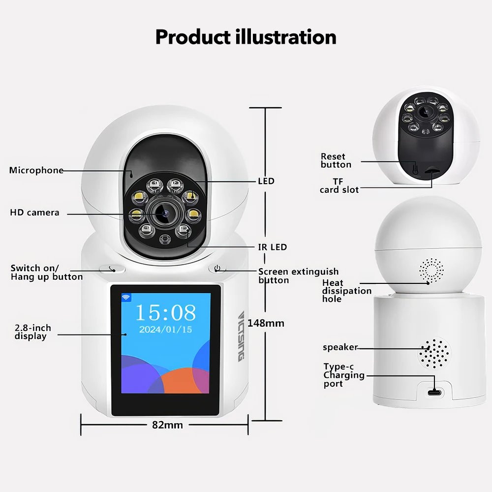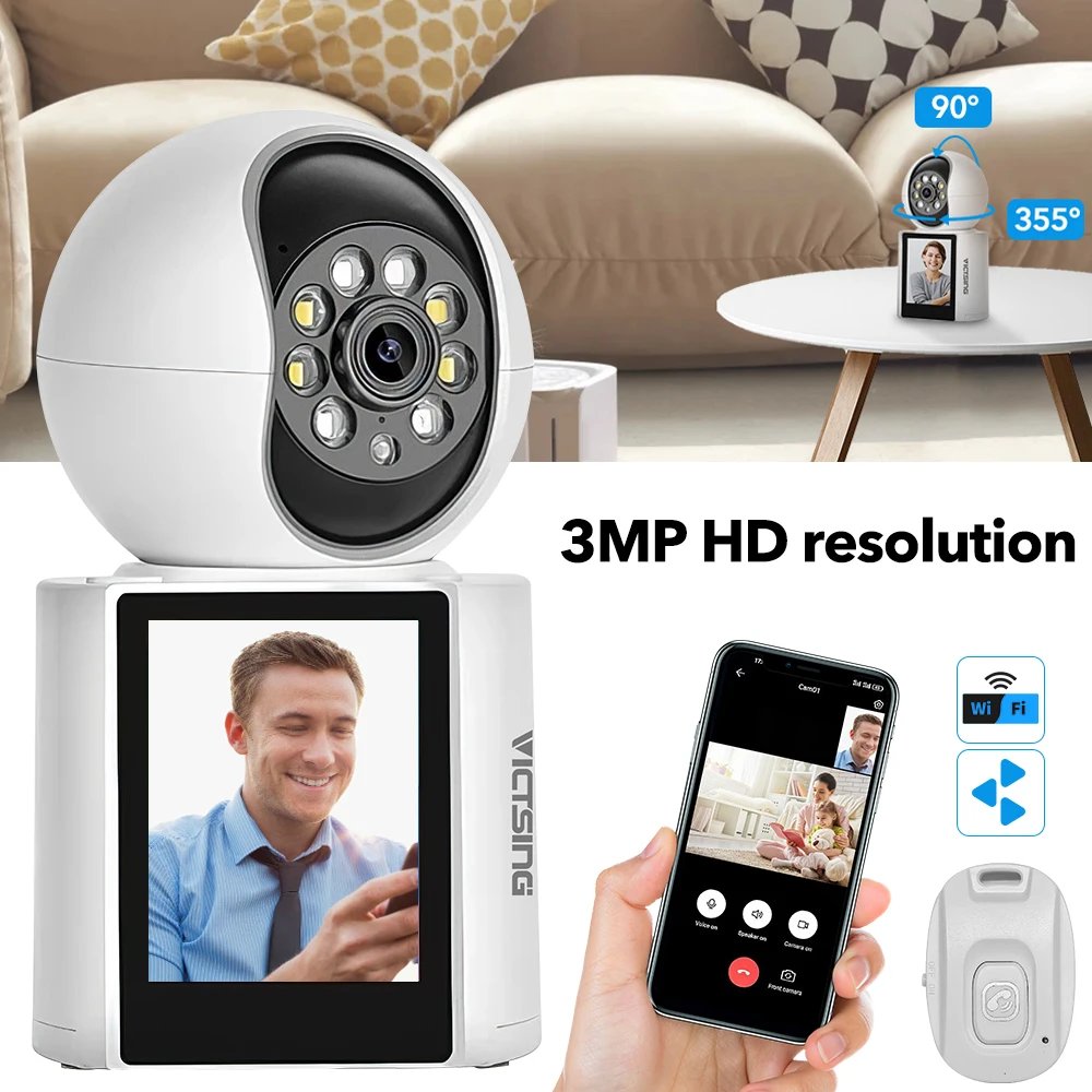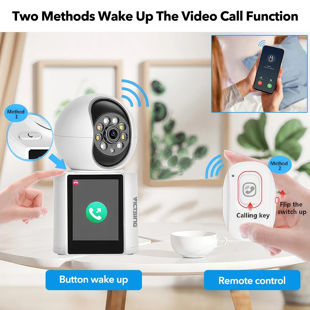 Mit 3MP HD-Auflösung zeigt die Videoanruf-Smart-Kamera ein klares, flüssiges Live-Video. Sie können Ihr Zuhause/Kind/ältere Personen/Nanny/Hund/Haustier jederzeit und überall im Blick behalten. Die Kamera funktioniert mit 2.4G WiFi (5G wird nicht unterstützt). - Zwei-Wege-Videoanrufe mit einem Klick: