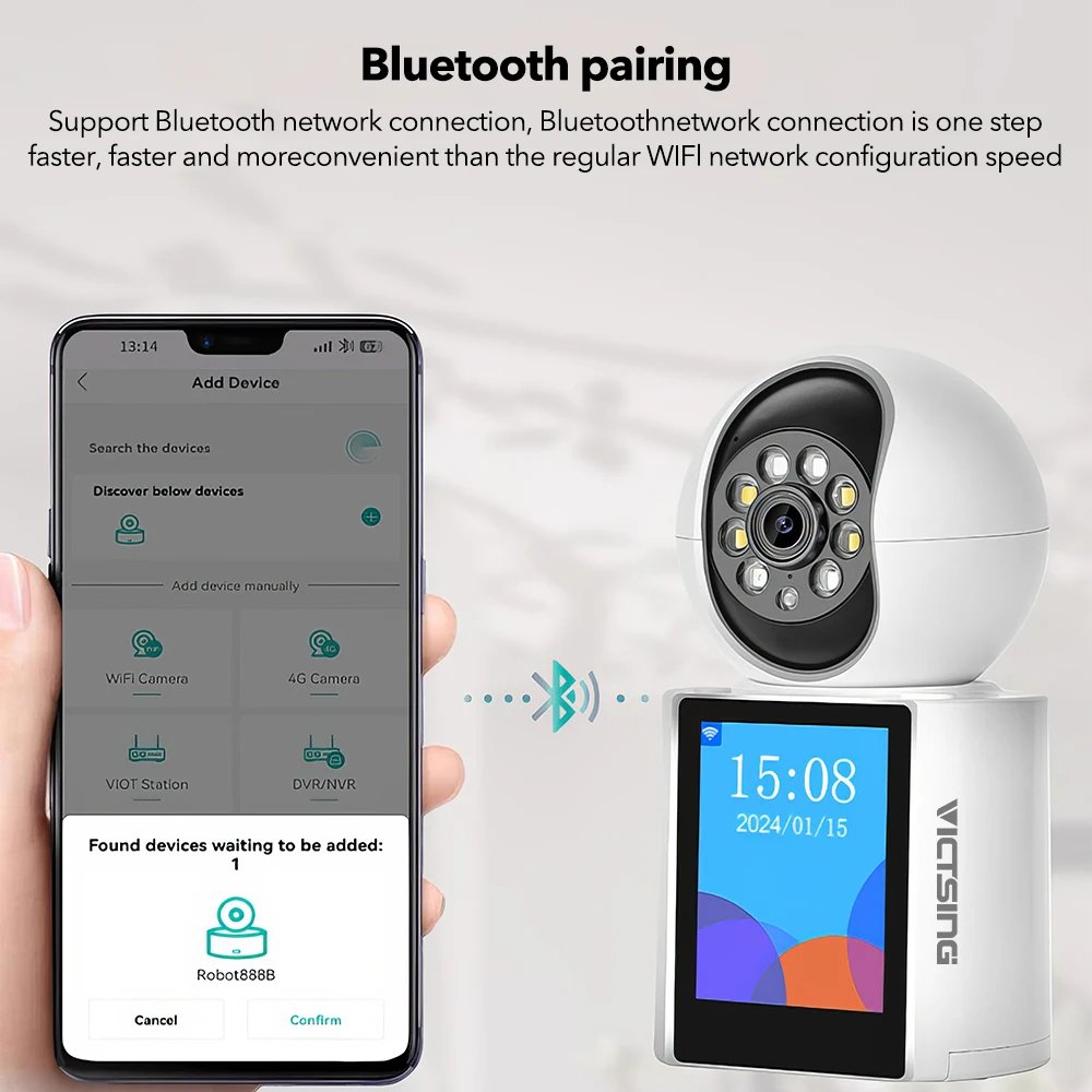 Diese Smart-Kamera muss nicht installiert werden. Einfach die App herunterladen und in Sekunden über Bluetooth verbinden – ideal auch als Geschenk für ältere Menschen. Unterstützt sowohl Cloud- als auch Speicherkartenaufzeichnung, sodass Sie jederzeit und überall Aufnahmen ansehen können.