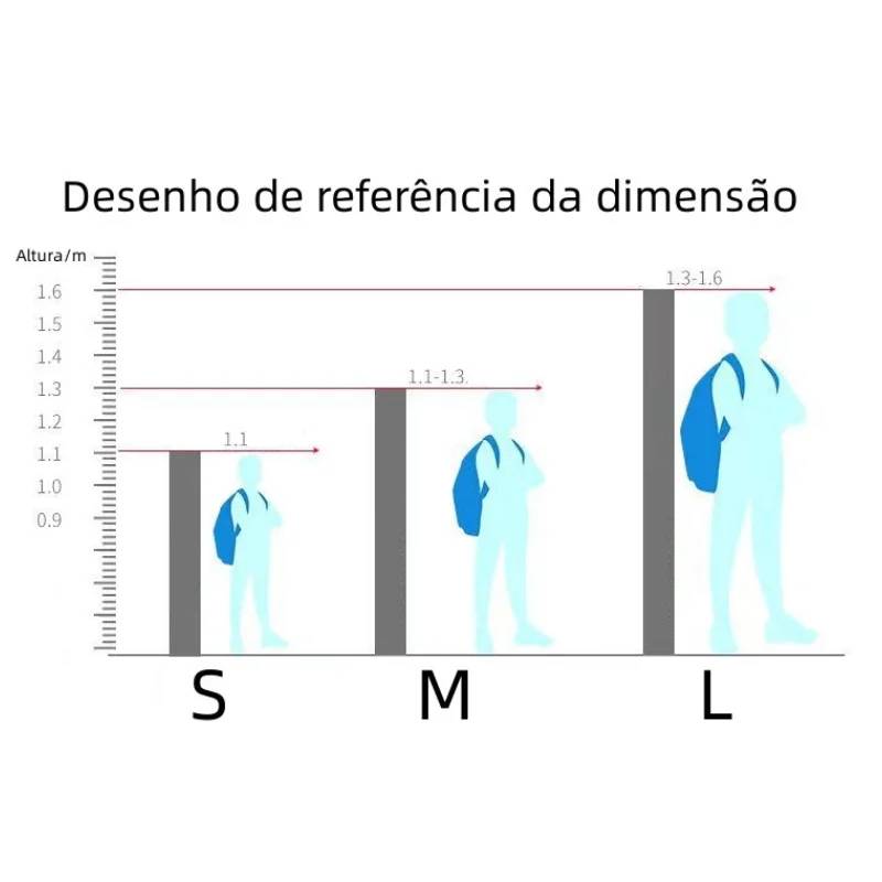 Größe des Schulrucksacks: Klein 26×14×35 cm, Mittel 28×16×38 cm, Groß 32×18×42 cm.