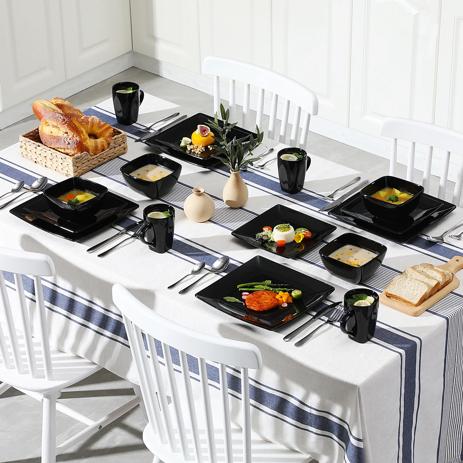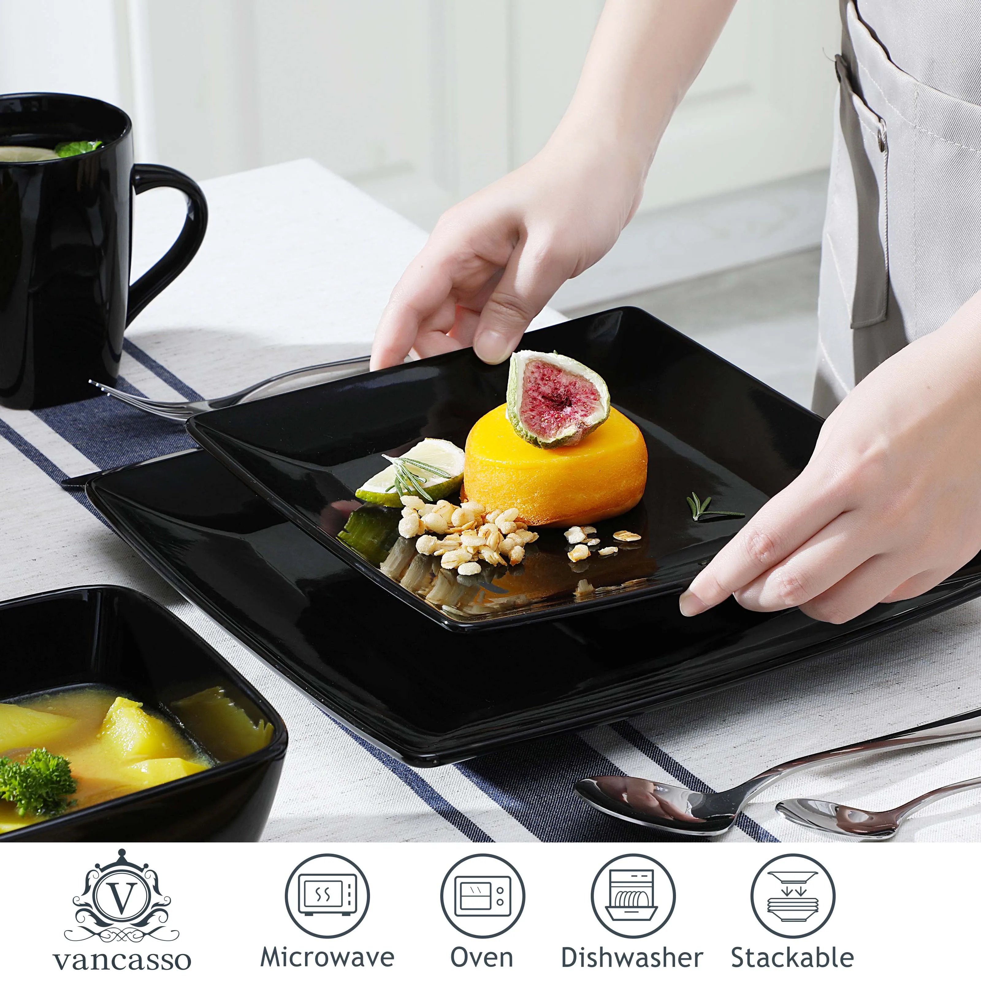 Be the first to review “Vancasso SOHO 16/32/48-teiliges quadratisches Geschirrset aus schwarzem Keramikporzellan mit Speiseteller, Dessertteller, Schüssel und 240 ml Becherset” Antwort abbrechen